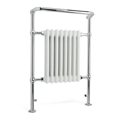 TRADITIONAL FLOOR MOUNTED COLUMN DESIGN: The iBathUK Ascot 8 Column heated towel rail is a floor mounted traditional radiator with wall support, featuring a curved rail design in polished chrome and gloss white. The 8 steel columns provide ample towel hanging space while optimizing heat circulation. Measuring 952 x 659mm, it adds classic elegance and practical warmth to any bathroom interior. HIGH THERMAL OUTPUT FOR CENTRAL HEATING: Designed for hydronic central heating systems, this floor mounted traditional radiator delivers exceptional performance with 2420 BTU at 50°C and 709 watts output. The high thermal conductivity ensures fast, even heating, keeping towels warm and bathrooms comfortable throughout daily use. PREMIUM STEEL CONSTRUCTION WITH SAFETY TESTING: Constructed from durable steel with chrome plating and powder coating, this 8 column radiator is salt spray tested for 96 hours and 100% leak tested at 5.2 bar. Anti-leak certification, corrosion resistance, and a maximum working temperature of 95°C guarantee long-lasting, safe, and reliable bathroom heating. FLEXIBLE INSTALLATION AND PLUMBING OPTIONS: This floor mounted traditional radiator with wall support provides left or right reversible plumbing access and supports angled valves and thermostatic control options. Professional installation is recommended, taking 45–60 minutes. Wall support ensures stability, safety, and balance, and no isolation valves are required. BUILT FOR EVERYDAY BATHROOM USE: With a 6.8 litre water capacity and up to 50 kg load-bearing strength on wall support, this towel rail radiator can hold multiple towels with ease. Perfect for bathrooms, it blends traditional column styling with modern efficiency and comes backed by a 10-year iBathUK guarantee for dependable, long-term use., Weight: 34.392112872 Pounds, Manufacturer: iBathUK