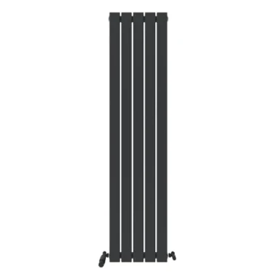 VERTICAL SLIM DESIGNER RADIATOR WITH HIGH HEAT OUTPUT: The iBathUK Apex vertical single slim flat panel radiator is crafted from premium steel with a powder-coated matt anthracite finish for a contemporary look. Measuring 1600mm high, 380mm wide, and 47mm deep, it features slim flat 68x12mm tubes across 5 columns to maximise heat distribution. Delivering 2270 BTU at 50°C, this designer radiator vertical functions as a single flat panel radiator, perfect for bathrooms, bedrooms, and living rooms. BUILT FOR CENTRAL HEATING SYSTEMS: Designed for hydronic central heating, this vertical single panel radiator provides efficient, even warmth with a 5.2-litre water volume. Supporting a maximum working pressure of 0.6 MPa and temperatures up to 95°C, it has been fully overheat and anti-leak tested. Each radiator is also 100 percent leak-tested at 6 bar, ensuring reliable performance and long-term durability for daily use in any room. FLEXIBLE WALL MOUNTED INSTALLATION WITH REVERSIBLE PLUMBING: This wall mounted radiator is suitable for solid walls or reinforced stud walls and supports up to 65kg. Pipe centres measure 454mm, with a 65mm wall-to-pipe distance and a 94mm projection, maintaining a slim, space-efficient profile. Bottom feed plumbing is left/right reversible, compatible with angled or straight valves, allowing flexible installation while keeping a clean, modern vertical radiator appearance. DURABLE POWDER COATED STEEL FOR LONG-LASTING USE: Constructed from high-quality steel, the Apex vertical radiator features a tough powder-coated surface that resists corrosion, moisture, and daily wear. The matt anthracite finish complements contemporary interiors and is easy to maintain. Salt spray tested for 96 hours and pressure tested for leaks, this designer radiator vertical delivers reliable heating and long-term performance in bathrooms, bedrooms, or living areas. BOX CONTENTS & RELIABLE GUARANTEE: Supplied as a complete vertical single panel radiator with no assembly required, this unit is ready for wall mounting once isolation valves are fitted. Compatible with angled or straight valves selected separately, it offers versatile installation options. Backed by a 10-year iBathUK guarantee, high thermal conductivity, and rigorous safety testing, this radiator delivers consistent warmth, style, and peace of mind., Weight: 33.730726086 Pounds, Manufacturer: iBathUK