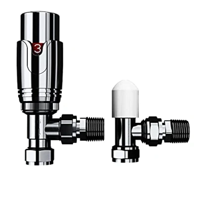 iBathUK Eco Thermostatic Radiator Valve,Round Angled Valve Pair, Central Heating,Tower Rail Chrome...