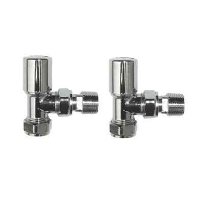 MODERN CHROME RADIATOR VALVE PAIR FOR MULTIPLE RADIATORS: iBathUK Essence radiator valve pair features a modern angled round design with smooth chrome plating to suit panel, column, towel and designer radiators. These chrome radiator valves are made from durable brass with ABS heads, offering corrosion resistance, rust resistance and UV resistance for long-term bathroom use. HIGH PRESSURE, HIGH TEMPERATURE RADIATOR VALVES – BUILT TO LAST: Designed for demanding heating systems, these radiator valves support a max operating temperature of 120°C, heat retention up to 120°C, and a working pressure of 12 bar with PN16 pressure rating. The robust brass construction ensures consistent performance across heating cycles. These chrome radiator valves provide dependable control for radiators while maintaining safety, durability and efficiency in everyday use. UNIVERSAL 15MM ANGLED VALVE FOR EASY INSTALLATION: With a 15mm diameter and universal orientation, this valve pair fits both wall-mounted and floor-mounted radiators. The angled design allows neat, compact pipework connections, while the clip-on installation method ensures easy assembly. Supplied with 1 valve and 1 lockshield, this combination provides a complete thermostatic radiator valve solution for precise heating control. QUIET, SAFE AND FAMILY-FRIENDLY RADIATOR VALVE DESIGN: Built with anti-vibration and noise reduction features, these radiator valves ensure quieter radiator operation. Heat insulation helps maintain efficient heat control, while rounded edges and anti-scald safety features make them child-safe for family homes. These bathroom radiator valves chrome are designed for comfort, safety and peace of mind without compromising on modern style or performance. WHAT’S INCLUDED & COMPATIBILITY YOU CAN TRUST: This product includes 2 chrome radiator valves, finished in smooth chrome plating to match modern bathrooms and heating systems. Suitable for towel rails but not for electric radiators, these radiator valves are ideal for central heating applications. Backed by a 5-year guarantee, the iBathUK Essence radiator valve pair delivers quality, reliability and long-term value for any radiator upgrade.