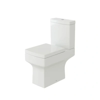 iBathUK Modern Bathroom Close Coupled Sqaured Shaped Pan Toilet with Cistern Short Seat WC Push Button Flush White Belfort