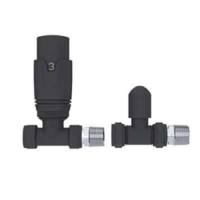 PRECISE STRAIGHT THERMOSTATIC CONTROL: The iBathUK Equa thermostatic straight radiator valve in matt anthracite ensures accurate room temperature control through a responsive TRV mechanism. Designed for radiator thermostat control, it automatically adjusts heat flow to maintain comfort and reduce energy consumption. Rated for 120°C maximum temperature, 12 bar working pressure, and PN16 pressure rating, this TRV valve guarantees reliable performance across modern heating systems. COMPLETE TRV & LOCKSHIELD PACKAGE: This set includes 1 thermostatic valve and 1 lockshield, ready for installation on panel, column, towel, and designer radiators. The straight design allows precise control of heat output while maintaining a sleek modern appearance. Ideal for wall-mounted or floor-mounted radiator setups, this matt anthracite valve combines style and functionality in one package. DURABLE BRASS CONSTRUCTION WITH POWDER COATING: Crafted from high-quality brass with a sandy powder-coated matt anthracite finish, this valve is corrosion resistant, rust resistant, and UV resistant. Heat retention up to 120°C ensures long-lasting performance, making this thermostatic radiator valve suitable for daily use in bathrooms, kitchens, and living spaces while maintaining a clean, modern look. SAFE, QUIET & ENERGY-EFFICIENT OPERATION: Engineered with anti-vibration and noise reduction features, the Equa straight TRV operates silently for a peaceful home environment. Heat insulation minimizes energy loss, while rounded edges and anti-scald features provide enhanced safety for children and families, delivering reliable performance without compromising comfort or efficiency. EASY UNIVERSAL INSTALLATION & GUARANTEED RELIABILITY: With a 15mm diameter and universal orientation, this matt anthracite TRV fits most wall-mounted and floor-mounted radiators, including towel rails. The clip-on installation allows for quick and hassle-free setup, with no additional fixings required. Backed by a 5-year guarantee, this valve ensures durability, consistent heat control, and modern style for every radiator., Weight: 1.10231131 pounds, Manufacturer: iBathUK