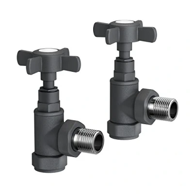 TRADITIONAL ANGLED DESIGN IN MATT ANTHRACITE: The iBathUK Regency radiator valve pair features a classic angled traditional design with a matt anthracite powder-coated finish and sandy texture. Made from solid brass, these traditional radiator valves are corrosion-resistant, rust-resistant and UV-resistant for long-lasting performance. Ideal as valves for radiators and chrome towel radiator valves, they suit panel, column, towel and designer radiators with timeless style. BUILT FOR HIGH TEMPERATURES & PRESSURE: These angled radiator valves support heat retention up to 120°C, a maximum operating temperature of 120°C, and a working pressure of 12 bar with a PN16 pressure rating. The durable brass construction ensures strength, reliability, and consistent heat flow, providing efficient and safe performance for everyday radiator operation. UNIVERSAL 15MM ANGLED VALVES FOR EASY FITTING: With a 15mm diameter and universal orientation, these radiator valves are compatible with wall-mounted or floor-mounted radiators. The angled configuration allows neat pipework connections, making them perfect for tight spaces and exposed heating setups. Installation is quick with a clip-on method and no assembly required, offering a practical and user-friendly solution. QUIET OPERATION WITH SAFETY FEATURES: These traditional radiator valves include anti-vibration and noise reduction technology for quieter radiator performance. Heat insulation helps maintain efficiency, while rounded edges and anti-scald protection ensure child-safe use. Designed for modern family homes, these angled radiator valves combine safety, comfort, and style. WHAT’S INCLUDED & GUARANTEE: Supplied as a pair of 2 angled traditional radiator valves in matt anthracite with a sandy finish. Compatible with panel, column, towel, and designer radiators, and suitable for towel rails but not electric radiators. Backed by a 5-year guarantee, the iBathUK Regency angled radiator valves deliver durable performance, classic design, and long-term value., Weight: 1.543235834 Pounds, Manufacturer: iBathUK