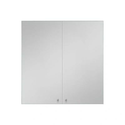 iBathUK Revo Wall Mounted Double Door Bathroom Mirror Cabinet, Frameless Rectangular Silver Mirror, Magnetic Catch, Modern Storage, Polished Stainless Steel, 600x670mm