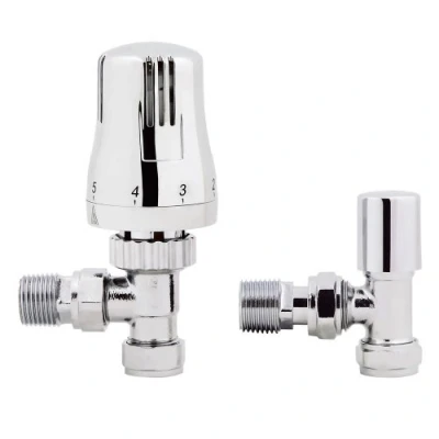 NRG Modern Thermostatic Lockshield Angled Radiator Valves 15mm Central Heating Taps Chrome