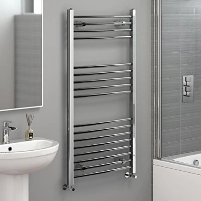 iBathUK Towel Radiator Rail, Curved Panel Warmer, Column Designer Wall Mounted Heated Rail for Bathroom 1200x600mm, Chrome