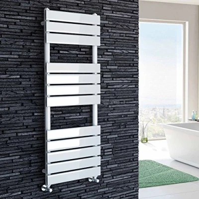 iBathUK Towel Radiator Rail, Flat Panel Warmer, Column Designer Wall Mounted Heated Rail for Bathroom 1200x450mm, White