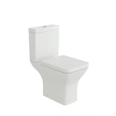 iBathUK Venice Close Coupled Toilet, Ceramic Toilet Pan with Chrome Dual Flush Cistern, Soft Close, Quick Release Seat for Bathroom White Gloss, Square Shape