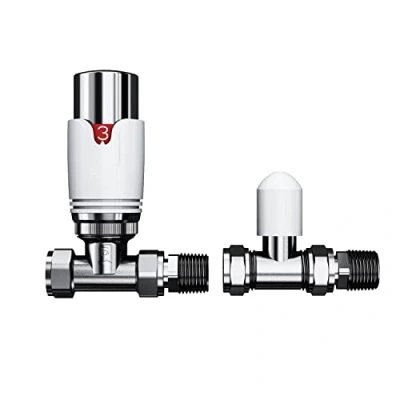 iBathUK Eco Thermostatic Radiator Valve,Round Straight Valve Pair, Central Heating,Tower Rail Chrome...