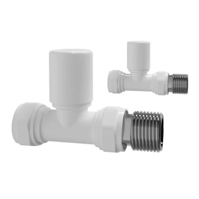 iBathUK White Straight Towel Radiator Valves 15mm Central Heating Tap RA31S