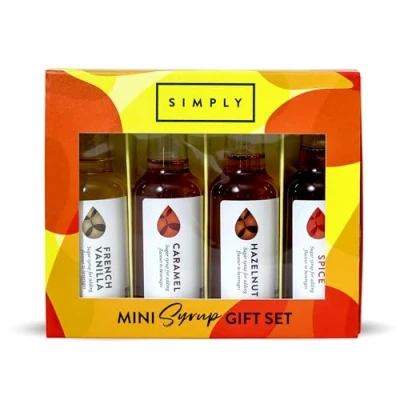 4x FLAVOURED COFFEE SYRUPS IN ONE GIFT SET – Discover a variety of delicious coffee syrups with this IBC Simply coffee syrup gift set. Includes 1x French Vanilla, 1x Hazelnut, 1x Caramel, and 1x Maple Spice syrups for coffee drinks, frappes, or desserts, making it perfect for any coffee enthusiast PERFECT FOR ANY BEVERAGE OR BAKED DELIGHT – These versatile syrups for coffee drinks are ideal for both hot and cold beverages. Add a splash of French Vanilla coffee syrup to your latte, a dash of Caramel syrup to frappes, or a hint of Maple Spice syrup in festive hot chocolates! NUT-FREE, VEGAN & HALAL-FRIENDLY – Each coffee syrup in this set is crafted to be vegan, nut-free, and made without artificial ingredients where possible, making it the ideal choice for people with dietary preferences or nut allergies EASY TO USE & BURSTING WITH FLAVOUR – Simply add 15ml of your preferred coffee syrup to any drink. The Hazelnut syrup adds a cozy, nutty taste, while the Caramel coffee syrup delivers rich sweetness. Perfect for a quick flavor boost in any recipe A THOUGHTFUL GIFT FOR COFFEE LOVERS – This coffee gift set makes an excellent choice for Christmas gifts for him and her, or as a holiday treat for yourself. Each mini syrup is neatly packaged, ready to make anyone's coffee moments a little sweeter