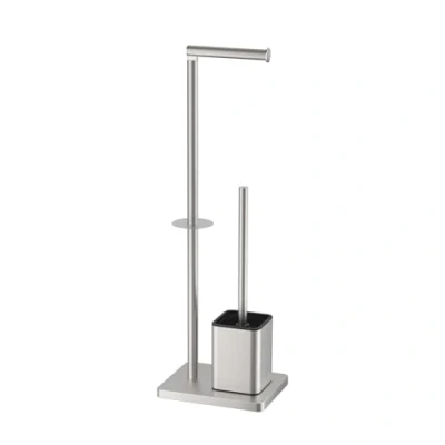 [PREMIUM MATERIAL]: Freestanding toilet roll holder and toilet brush set is made of 304 stainless steel, waterproof & rustproof, suitable for humid environments such as bathroom. [TOILET PAPER HOLDER WITH STORAGE FUNCTION]: L-shaped arm holds a single roll, vertical pole-style reserve space for up to 2 toilet rolls, set down next to the toilet, save space. [FREESTANDING DESIGN]: Standing toilet roll holder with anti-slip base for stability, the base is lined with anti-slip paddings, place the toilet roll stand alone anywhere without sliding out. [EASY TO INSTALL]: No drilling needed! Just connect the toilet roll holder stand to the base, easy to be moved anywhere. Perfect for every bathroom.