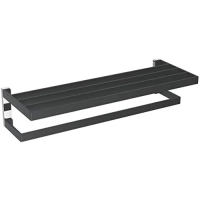 Ibergrif Soto, Square Towel Rail with Shelf, Wall Mounted Black Bathroom Rack, Brass, M36124B