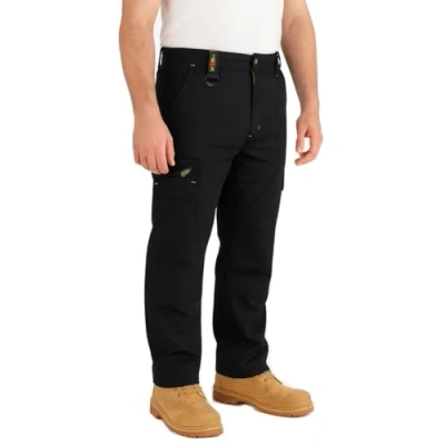 Built for Comfort & Flexibility – Features an elastic waist for a flexible fit, straight-leg design, and modern waistband for unrestricted movement during long shifts—ideal for tradesmen, builders, warehouse staff and technicians Premium Functional Details – Includes a sturdy YKK premium zip fly, twin belt loops for added belt stability, and a practical D-ring attachment for keys or small tools—engineered for professional performance Functional Multi-Pockets – Designed with two thigh cargo pockets with flaps, two rear pockets and two front swing pockets, giving you secure storage for tools, phones, small accessories and daily work essentials Heavy-Duty & Long-Lasting Fabric – Made from a strong 65% polyester and 35% cotton blend, these men’s work trousers resist wear, abrasions and fading, offering everyday durability for construction, industrial sites and DIY work Easy Care & Wide Size Range – Machine-washable fabric that maintains shape and colour after repeated washes. Available in Black or Navy, waist sizes 28"–52" and lengths Short (29"), Regular (31") and Long (33")