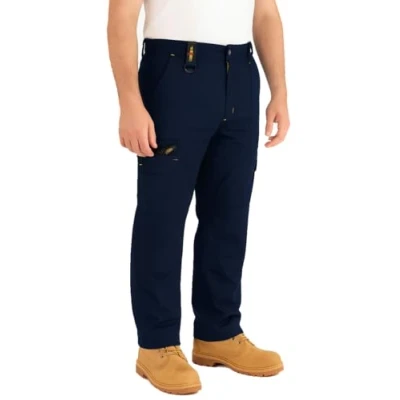 Built for Comfort & Flexibility – Features an elastic waist for a flexible fit, straight-leg design, and modern waistband for unrestricted movement during long shifts—ideal for tradesmen, builders, warehouse staff and technicians Premium Functional Details – Includes a sturdy YKK premium zip fly, twin belt loops for added belt stability, and a practical D-ring attachment for keys or small tools—engineered for professional performance Functional Multi-Pockets – Designed with two thigh cargo pockets with flaps, two rear pockets and two front swing pockets, giving you secure storage for tools, phones, small accessories and daily work essentials Heavy-Duty & Long-Lasting Fabric – Made from a strong 65% polyester and 35% cotton blend, these men’s work trousers resist wear, abrasions and fading, offering everyday durability for construction, industrial sites and DIY work Easy Care & Wide Size Range – Machine-washable fabric that maintains shape and colour after repeated washes. Available in Black or Navy, waist sizes 28"–52" and lengths Short (29"), Regular (31") and Long (33")