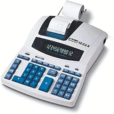 Double zero key, decimal correction, item counter 35 lines per second print Ib404108 Displays negative values 12-digit portable calculator with time calculation, square, sign change Ibico
