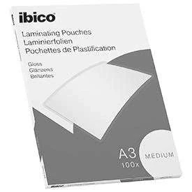 The Ibico laminating pouches come in different thickness and sizes and all provide a professional, gloss surface finish to your documents allowing them to look well presented and to ensure they stay cleaner for longer.The Ibico Light laminating pouches come in a pack of 100, A3 size laminating pouches. The low weight makes the Ibico Light laminating pouches ideal to protect and enhance valuable presentation pages, reference lists, product sheets and notices or to give a glossy, professional look to any document. The Ibico Medium A3 pouches are compatible with all A3 laminators.(80 Micron - Set your machine to 100 Mic)