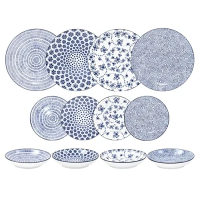 IBILI 12 Piece Dinnerware Set Harmonia Blue, Porcelain Plates for 4 People