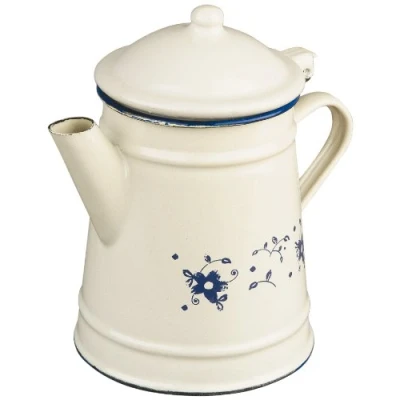 Ibili Coffee Pot Sena conical 1 l of Enamelled Steel, White/Blue, 10 x 20 cm