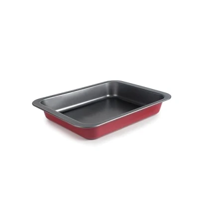 Made of carbon steel, it is scratch resistant and ensures long lasting durability. Measures 28cm long, 22cm wide and 5cm high. Features a Skandia 2-layer non-stick coating - PPG, PFOA and BPA free. Can bake at temperatures up to 230º. Its red color and material bring a traditional style to the kitchen and is ideal for various roasting preparations. It is recommended to wash by hand and dry with a cloth immediately after use. Not dishwasher safe.
