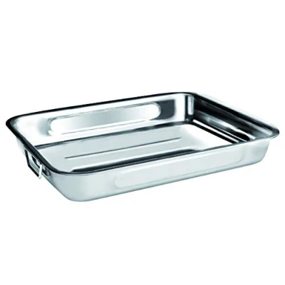 Ibili Roasting pan with Folding Handles 40x19x5,5 cm of Stainless Steel, Silver, 40 x 19 5.5