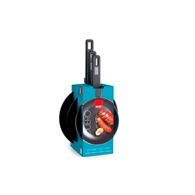 Duero pan set made of forged aluminium with 2-layer non-stick coating. Full Induction base compatible with all types of cookers. Ergonomic soft touch handle for a comfortable and secure grip. Fast and even heating. Consists of 1 frying pan 18 cm + 1 frying pan 22 cm + 1 frying pan 26 cm, Manufacturer: IBILI