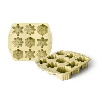 Cast Aluminum: Cast aluminum construction provides even heat distribution for optimal baking results Optimal dimensions: with dimensions of 27.5 x 24.5 x 4.2 cm and 9 pieces, the mould is optimal for baking original and juicy cakes, and then decorating them to taste; they can also be used in the preparation of other desserts such as brownies, jellies and more Quality Non-stick Coating: Facilitates demolding and optimizes your creations to maintain their shape and presentation Snowflake Design: Celebrate the winter season with this mold that prints the charming shape of snowflakes on your creations BPA Free