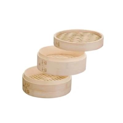 JADE TEMPLE Steamer Set Bamboo 2 Baskets with 1 Lid in Gift...