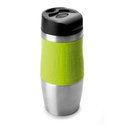 Made of stainless steel, silicone and plastic cover Capacity: 0.4 litres BPA-free Its leak-proof screw cap technology and its double wall with intermediate vacuum allow for both hot and cold liquids to be kept at the same temperature for a long period of time (approximately 12 hours). Removable lid for easy cleaning, silicone coating for comfortable grip and non-slip rubber base. This reusable tin is a perfect replacement for disposable plastic bottles and helps to protect the environment.