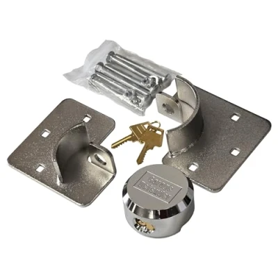 iCAN Heavy Duty Lock, 73 mm Round Shackleless Padlock and Hasp Solution Pack, Silver, Maximum Security, Corrosion Resistant, Suitable for Vans, Sheds, Garages, Container, 2Kg. (1)
