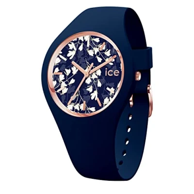 Fall for the elegant floral design of the ICE flower blue lily watch, thanks to its deep blue silicone wrist strap with rose gold details, this blue watch is a real eye catcher on the wrist, with its chic dial adorned with little flowers, it adds a feminine floral touch to all your everyday outfits Small (34 mm) women's wristwatch with silicon case and silicon strap. Watch circumference from 13 cm to 17 cm Water resistant up to 10 ATM : immersion and watersport resistant (swimming), not suitable for diving Shipped with instruction manual and presentation box Collection ICE flower