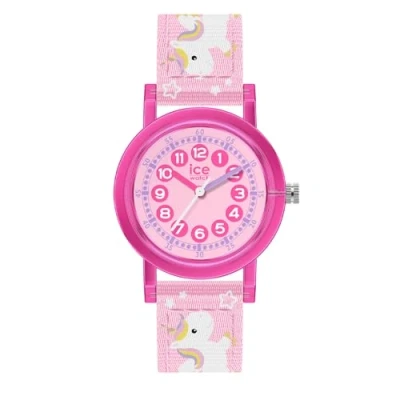 Discover ICE time learning, the watch designed to make learning the time easy and fun for children. High quality 17 cm length and 14 mm width a Pink Nylon strap with a Buckle Case diameter: 28 mm,case thickness: 8 mm, case colour: Pink and dial colour: Pink Water resistant: 3 bars-Weight: 17 g The watch is delivered in an original gift box and has a warranty of 2 years