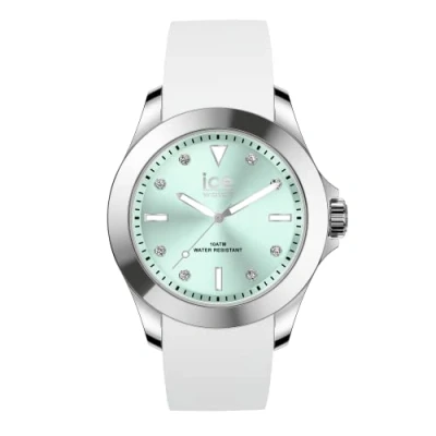 Ice WATCH Steel White Pastel Green Women's Wristwatch With Silicon Strap 020381 (Medium)