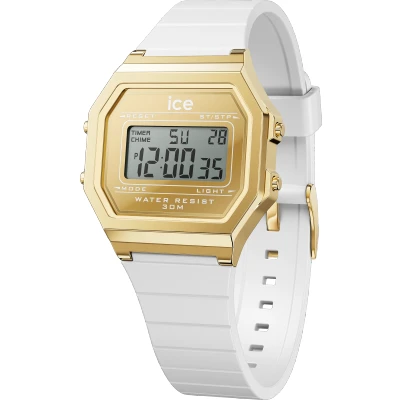This Ice Watch Ice Digit Retro - Metal Gold Mirror - White Digital Watch for Women is the perfect timepiece to wear or to gift. It's Gold Rectangular case combined with the comfortable White Silicone watch band will ensure you enjoy this stunning timepiece without any compromise. Operated by a high quality Quartz movement and water resistant to 3 bars, your watch will keep ticking. Dare timeless charm with the ICE digit retro Metal gold mirror. With its design inspired by the classics of the past, this sleek watch combines retro style with modern comfort thanks to its soft, comfortable white silicone strap. This Digital watch has a calendar function: Day-Date , Stop Watch , Dual Time , Alarm and Light High quality 19 cm length and 18 mm width White Silicone strap with a Buckle Case measurement: 32 X 34 mm,case thickness: 8 mm, case colour: Gold and dial colour: Gold