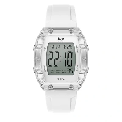 Adopt a sleek, futuristic style with the ICE digit boliday. This digital watch is not just a watch, but an accessory that combines modernity and sophistication. This Digital watch has a calendar function: Day-Date as well as a Stop Watch , Countdown , Alarm and Light High quality ICE-WATCH ICE digit boliday - White - Clear - Silver - Small strap with a secure 024565, measuring 4895173341656 cm in length and EAN mm in width Case measurement: 37 X 44 mm,case thickness: 12 mm, case colour: Transparent and dial colour: LCD Water resistant: 10 bars -Weight: 41 g The watch is delivered in an original gift box and has a warranty of 2 years