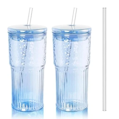 Innovative Dual Textured Design: Our 20 oz glass coffee mug combines a corrugated top half with a hammered bottom half for a comfortable, non-slip grip. Perfect as an iced coffee cup, tea cup, water glass or smoothie, the glass iced coffee cup with lid and straw keeps drinks fresh and safe, making it an ideal everyday addition to an iced coffee cup or coffee mug. Premium Borosilicate Glass: This glass with lid and straw is made of premium borosilicate glass that is BPA and lead free to ensure pure taste. Our coffee glasses ensure that your drinks are odourless and provide a premium drinking experience. Durable and Easy to Clean:Thick glass construction ensures that these cups are strong and durable and will remain stable when placed on any surface. These iced coffee cups with lids are made from thick, high quality glass to ensure durability and easy cleaning. Both the bottle and straw are dishwasher safe, and the wide mouth design makes cleaning easier and ensures they remain hygienic when reused. Glass Set 2: Glass set including 2 glass coffee cups, 2 glass lids and 3 glass straws, very practical and cute glass set, suitable for the kitchen and restaurant! Multipurpose:The modern design glass is perfect for any occasion and any hot or cold drink. It is widely loved in homes, kitchens, breweries, cafes, bars and restaurants. You can use it to make tea, milk tea, soda, water, iced coffee, smoothies, juices or any other fun holiday drinks.