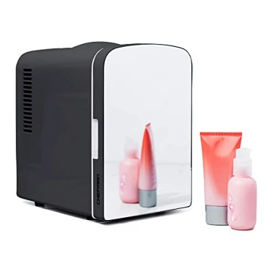 Iceman Portable Mirrored Personal Fridge 4 Litre Mini Refrigerator, Skin Care, Makeup Storage, Beauty, Serums and Face Masks, Small for Desktop Or Travel, Cool & Heat, Cosmetic Application, Black