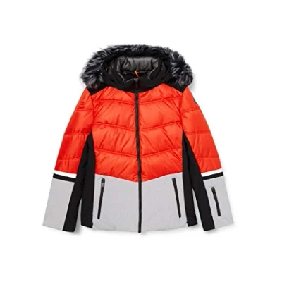 ICEPEAK jacket for women Detachable hood. Zipped inner Pocket. Ski pass pocket. Detachable faux-fur hood Trim. Inner Lycra cuffs with thumb holes. Comfortable inner collar Technical values of the fabric: 5 000 mm 5 000 mvp (water column breathability). adjustable hem and hood. Fixed snow gaiter. Zip with chin guard Functionality and comfort have been paid special attention to in the design process of this a.W.S. Active Product, which makes it fit for both energetic and relaxed activities The fabric surface has been treated with a water-repellent finish