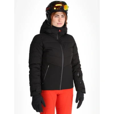 The Icepeak Electra insulated ski jacket for women is made to provide warmth and protection on the slopes. This jacket has a water column rating of 10,000 mmH2O and a breathability rating of 5,000 gr/m²/24h, ensuring you stay dry and comfortable during your winter adventures. Constructed from durable 2-layer fabric with a waterproof membrane, this jacket features 2-way stretch material for enhanced freedom of movement. The synthetic down insulation offers excellent thermal retention without adding bulk, making it ideal for both energetic skiing sessions and relaxed après-ski activities. Designed with practicality in mind, the Icepeak Electra includes adjustable cuffs, hem, and hood to tailor the fit to your needs. A fixed snow gaiter with an anti-slip silicone band ensures snow stays out while you're carving through powder. Additional features such as inner lining pockets, a large internal mesh pocket, an internal zip pocket, and a convenient ski pass pocket on the sleeve offer ample storage options. This jacket is part of the Icepeak Polar ski series, tailored for skiers who demand functionality combined with eco-conscious design choices. Made using recycled materials and treated with a PFC-free water-repellent finish, it reflects Icepeak's commitment to sustainability. The Icepeak Electra insulated ski jacket is perfect for women seeking reliable performance gear that excels in cold weather conditions while minimizing environmental impact.