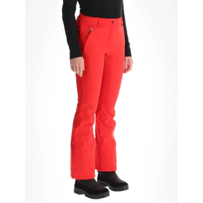 AmazonThe Icepeak Entiat softshell ski trousers for women have the following features: The Icepeak Entiat softshell ski trousers for women are windproof and waterproof trousers that allow you to effortlessly drive down the mountain. Specifications: fit: slim fit; high waist; elastic waist; waterproof: active wear system active: water and windproof up to 10,000 mm water column value; water-repellent material temperature regulation: breathability of 5,000 g/m²/24h; insulating lining pockets: two pockets with zip; snow guard: fixed snow gaiters and short zips on the leg ends; colour: red; material: 90% polyester, 10% elastane