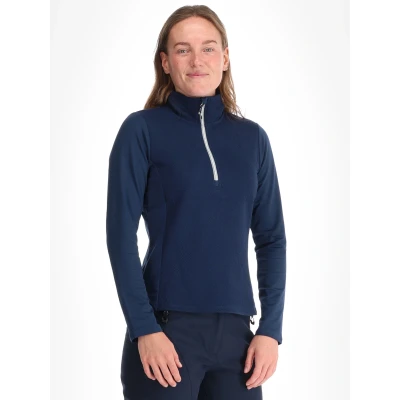 Icepeak Evansdale women's pullover. A slim fitting pullover designed for winter layering within the Icepeak Polar ski series. The half zip makes the pullover easy to put on and take off, and provides simple ventilation when activity levels rise. The slim fit follows the body's contours, so it sits neatly under a ski jacket without bulk and retains freedom of movement on the slopes. Constructed from a blend of polyester, elastane and viscose, the fabric combines durability and quick-drying properties with stretch and a soft hand. Polyester brings resilience and fast drying, elastane adds flexible stretch for ease of movement, and viscose improves next-to-skin comfort. Functionally, the Evansdale works well as a mid layer for skiing and other winter sports, or as a standalone layer on milder days. It offers a close fit for efficient layering and comfortable mobility during uphill walks, piste sessions or everyday winter wear. Technical details. Series: Icepeak Polar ski. Fit: slim fit. Closure: half zip. Materials: polyester, elastane, viscose. Suitable for women seeking a tailored, functional pullover for winter activities.