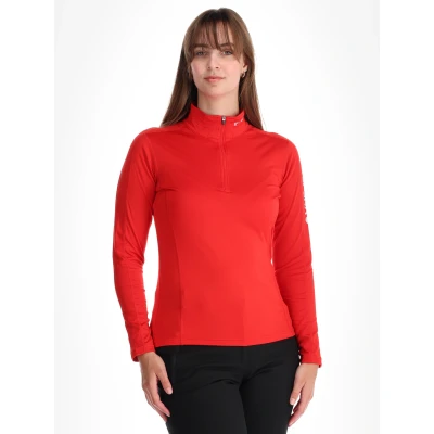 Icepeak Fairview women's pullover is a slim fit mid layer from the Icepeak Ski collection. It features a half zip for adjustable ventilation and a close, athletic cut that sits comfortably under a shell or an insulated jacket. The fabric blend is 92% polyester and 8% elastane, with a soft fleece face that provides warmth without excessive weight. The construction offers 4-way stretch for unhindered movement and a quick-drying, moisture-wicking finish to move perspiration away from the skin during high activity. Lightweight yet insulating, this pullover is suitable for alpine skiing, winter hikes and other cold-weather pursuits where layering and freedom of movement matter. The simple design and technical fabric make it easy to pair with outer layers while retaining a neat profile on the slopes.