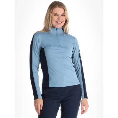 Icepeak Fairview women's pullover is a slim fit mid layer from the Icepeak Ski collection. It features a half zip for adjustable ventilation and a close, athletic cut that sits comfortably under a shell or an insulated jacket. The fabric blend is 92% polyester and 8% elastane, with a soft fleece face that provides warmth without excessive weight. The construction offers 4-way stretch for unhindered movement and a quick-drying, moisture-wicking finish to move perspiration away from the skin during high activity. Lightweight yet insulating, this pullover is suitable for alpine skiing, winter hikes and other cold-weather pursuits where layering and freedom of movement matter. The simple design and technical fabric make it easy to pair with outer layers while retaining a neat profile on the slopes.