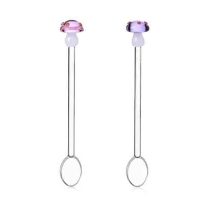 Ichendorf Milano Set of 2 Purple and Pink Mushroom Spoons Alice Collection H 15 cm Borosilicate Glass Handmade