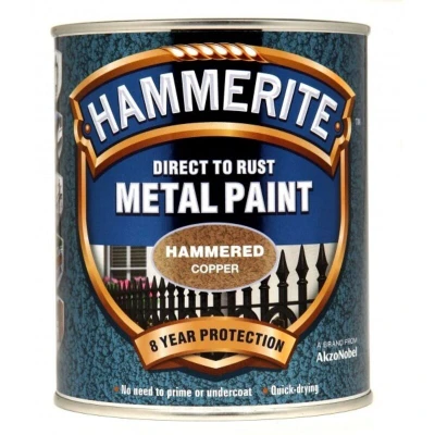General description This Hammerite Direct to Rust Metal Paint in Copper is a high-quality, durable coating designed to protect and rejuvenate metal surfaces. It features a decorative hammered finish that is smooth to the touch and effectively sheds water, providing long-lasting protection against rust and corrosion. This paint can be applied directly onto rusty or finished metal surfaces without the need for a primer, simplifying the painting process. Technical specifications Finish: Hammered Color: Copper Size: 750ml Coverage: 5 sq m per litre Durability: Up to 8 years of protection Recoat time: After 4 hours Compatibility and accessories Suitable for ferrous and non-ferrous metals, certain plastics, and wood Can be used on various metal items such as automotive parts, garden furniture, metal doors, gates, and railings Installation Apply directly onto clean, dry metal surfaces No primer required for most applications Follow the manufacturer's instructions for preparation,