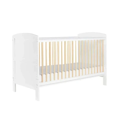 Why Buy Me? If you’re looking for a bold, modern style for your nursery, then meet the Coleby Scandi Cot Bed. Showcasing a distinct two-tone look that combines a clean white base colour with soft wood-effect accents, it’s sure to stand out in baby’s room. The design features rounded dowel slats to create an even more unique look. Brand: Ickle Bubba Product Type: Nursery & Playroom Furniture Product Sub-Type : Cot Beds Functionality: The mattress base can be adjusted to three different heights, allowing your baby to sit or stand safely as they grow. When the time comes, it can be easily converted into a toddler bed to support their growing independence. The cot also features teething rails to protect your baby’s gums and the cot edges. The Coleby Scandi Cot Bed can be purchased with a compatible mattress. All mattresses are tested to meet the latest UK safety standards. Dimensions: Requires a 140cm x 70cm mattress Dimensions: H: 95cm x D: 144cm x W: 75cm