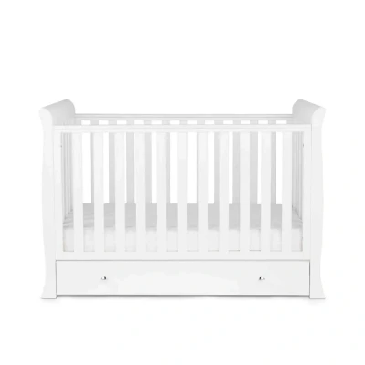 Why Buy Me? The Snowdon Mini Cot Bed has a distinctive and traditional sleigh design and is perfect for the space conscious parent. Can convert simply from a cot to a bed with toddler rails. Once they no longer need to be supported in their bed, the toddler rails are simply removed. As your child grows, it can be converted into a gorgeous day bed – a comfy place to hang out in the day and somewhere to rest at night. Brand: Ickle Bubba Product Type: Nursery & Playroom Furniture Product Sub-Type : Cot Beds Functionality The open slatted sides and ends are perfect for watching over your little one as they rest and include teething rails to protect your child’s delicate teeth. Designed with three height position, the top position is ideal for your baby to be taken in and out of the cot bed, without any unnecessary bending and is suitable from birth to approximately 6 months. When your baby is learning to sit and stand, the mattress base can then be lowered by a further two positions, providing extra security and reassurance. Once your little one is ready to progress to a bed, the Snowdon Mini Cot Bed can convert easily into a gorgeous junior bed suitable for a child up to approximately four years old. The toddler rails give the added reassurance during transition and the day bed offers maximum longevity and great value. Requires a 120 x 60cm mattress. The matching under drawer is included. On runners so it is raised off the floor and ideal for storing baby’s essentials with elegant handles for simple access. Dimensions: External dimensions: H: 91cm x W: 65.5cm x D: 134cm Requires mattress 120 x 60cm, available separately
