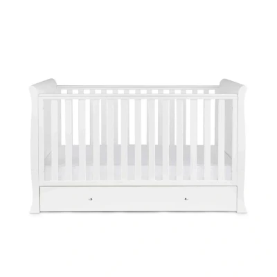 AmazonTimeless Sleigh Design – The Snowdon Classic Cot Bed features a traditional sleigh style, adding classic elegance to your nursery while blending seamlessly with modern décor 4-in-1 Convertible Cot Bed – Suitable from birth to around 4 years. Easily converts from a cot to a junior bed, offering long-lasting use and excellent value for growing children Adjustable Mattress Heights – Three base positions allow easy access for newborns and added security as your baby learns to sit and stand, ensuring comfort and peace of mind Under Drawer Storage – Includes a large under drawer on wheels for storing bedding, clothes and baby essentials. Elegant handles provide easy access and a coordinated look Quality & Practicality – Durable construction designed to last. External dimensions: H91 x W76 x D154cm. Requires a 140 x 70cm mattress (sold separately) for a complete sleeping solution