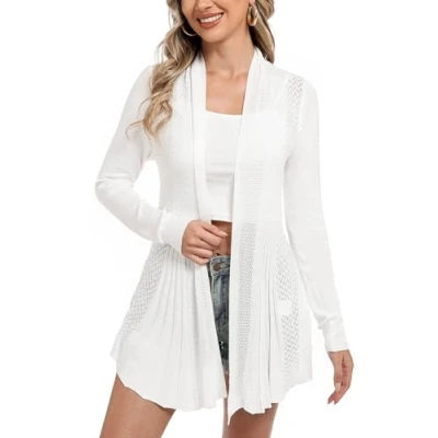 Soft, Breathable & Lightweight Comfort :Made from premium soft knit fabric, this women's lightweight cardigan offers a gentle, skin-friendly touch with a stretchy, breathable feel, keeping you comfortable all day. The ultra-lightweight design makes it ideal for layering, whether you're beating the office chill, enjoying a breezy summer evening, or transitioning between seasons effortlessly. Flattering Fit with Elegant Drape :Designed with a graceful waterfall front, mid-length silhouette, and tailored long sleeves, this ladies’ cardigan drapes beautifully over any figure, creating a streamlined, elongating effect. The open-front design makes it easy to layer over casual tops, fitted dresses, or office blouses, ensuring a polished yet relaxed look for every occasion. Your Go-To Cardigan for Every Occasion:Whether you're heading to work, running errands, meeting friends for brunch, or dressing up for a dinner date, this versatile long cardigan adapts effortlessly. Pair it with jeans for a casual-chic vibe, leggings for a cozy lounge outfit, or dresses for an effortlessly elegant ensemble—a truly seasonless wardrobe essential. Chic, Timeless Colors for Easy Styling :Available in classic black for a sleek look, bold red for a statement piece, elegant navy blue for sophisticated charm, and crisp white for a fresh, minimalist feel. This longline cardigan complements every wardrobe, making it easy to mix and match for a variety of stylish outfits. True-to-Size UK Fit for Every Body Shape:Designed for UK women, available in S (UK 6-8), M (UK 10-12), L (UK 14-16), XL (UK 16-18), XXL (UK 18-20). For the perfect fit, please refer to our size chart before ordering—a tailored look starts with the right size!