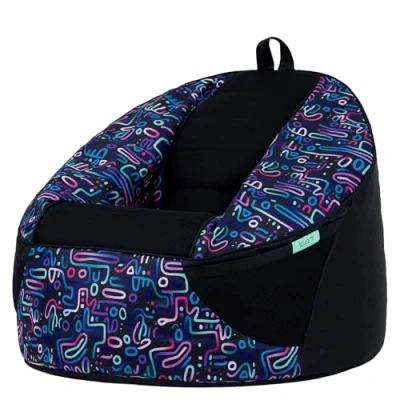 icon Alpha Kids Bean Bag, Retro Doodle Print, Gaming Chair for Kids, Bag with Filling Included Girls and Boys, Beanbags Children, Gamer Gifts, Room, Bedroom Accessories